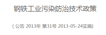 鋼鐵工業(yè)污染防治技術(shù)政策( 公告 2013年 第31號 2013-05-24實(shí)施) 一、總則 (一)為貫徹《中華人民共和國環(huán)境保護(hù)法》等法律法規(guī),防治環(huán)境污染,保障生態(tài)安全和人體健康,促進(jìn)鋼鐵工業(yè)結(jié)構(gòu)優(yōu)化升級,推進(jìn)行業(yè)可持續(xù)發(fā)展,制定本技術(shù)政策。 (二)本技術(shù)政策為指導(dǎo)性文件,供各有關(guān)單位在環(huán)境保護(hù)...