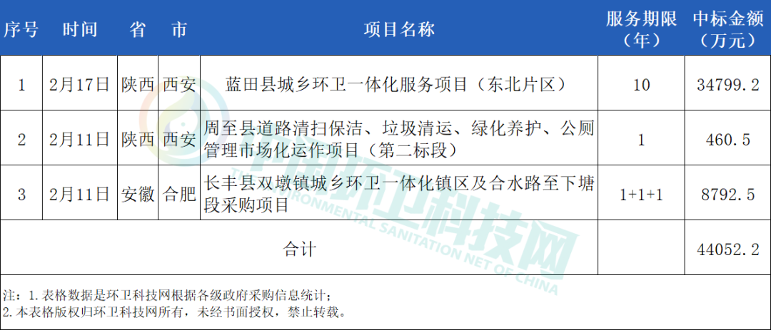 金沙田六天接連斬獲3個環(huán)衛(wèi)項目,總金額達4.41億元! 來源 |環(huán)衛(wèi)科技網(wǎng)作者 |王茜 環(huán)衛(wèi)科技網(wǎng)訊,金沙田六天接連斬獲3個環(huán)衛(wèi)項目,總金額達4.41億元! 藍田縣城鄉(xiāng)環(huán)衛(wèi)一體化服務(wù)項目 2月17日,陜西省政府采購網(wǎng)發(fā)布藍田縣城鄉(xiāng)環(huán)衛(wèi)一體化服務(wù)項目的采購結(jié)果公告。 金沙田中標(biāo)藍田縣城鄉(xiāng)環(huán)衛(wèi)一體化服務(wù)...