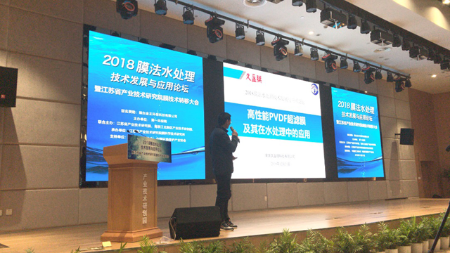 最后,來自南京久盈膜科技有限公司的周利躍部長,重點介紹了高性能PVDF膜的技術(shù)特點及優(yōu)勢所在,指明了該技術(shù)在水處理方面的重要作用。
