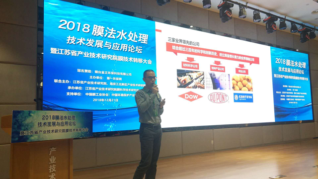 2018年12月21日,由第一環(huán)保網(wǎng)主辦,江蘇省產(chǎn)業(yè)研究院、南京江北新區(qū)產(chǎn)業(yè)技術(shù)研究園聯(lián)合主辦,江蘇省產(chǎn)業(yè)技術(shù)研究院膜科學(xué)技術(shù)研究所承辦,中國膜工業(yè)協(xié)會、中國環(huán)境保護產(chǎn)業(yè)協(xié)會共同支持,煙臺金正環(huán)??萍加邢薰惊毤屹澲?ldquo;2018膜法水處理技術(shù)發(fā)展與應(yīng)用論壇暨江蘇省產(chǎn)業(yè)技術(shù)研究院膜技術(shù)轉(zhuǎn)移大會”在江蘇省南京市江北新區(qū)產(chǎn)業(yè)技術(shù)研創(chuàng)園騰飛大廈盛大召開。