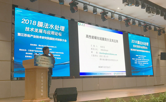 湖北迪潔膜科技有限責(zé)任公司的技術(shù)總監(jiān)陳常連同樣帶來了精彩的演講,重點介紹了公司在碳化硅陶瓷膜領(lǐng)域的突出創(chuàng)新與技術(shù)發(fā)展,詳細介紹了碳化硅結(jié)構(gòu)、燒成工藝及性能特點,以經(jīng)典的案例入手,充分論證了碳化硅陶瓷膜的分離優(yōu)勢,以及在含油廢水處理、酸性介質(zhì)處理等方面應(yīng)用的廣闊前景與意義。