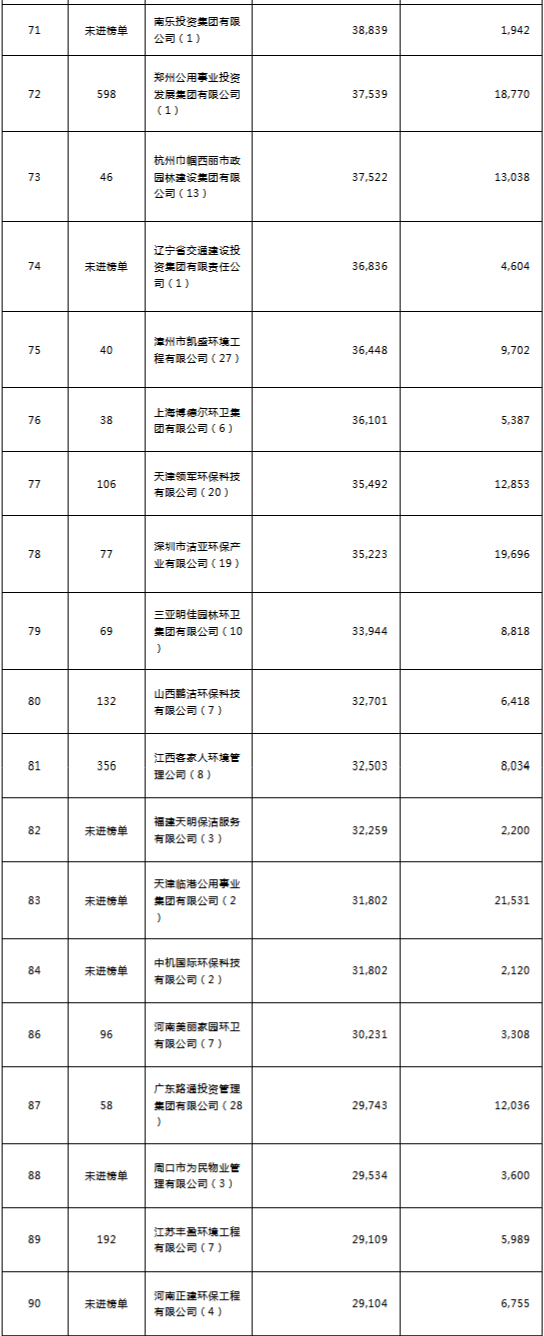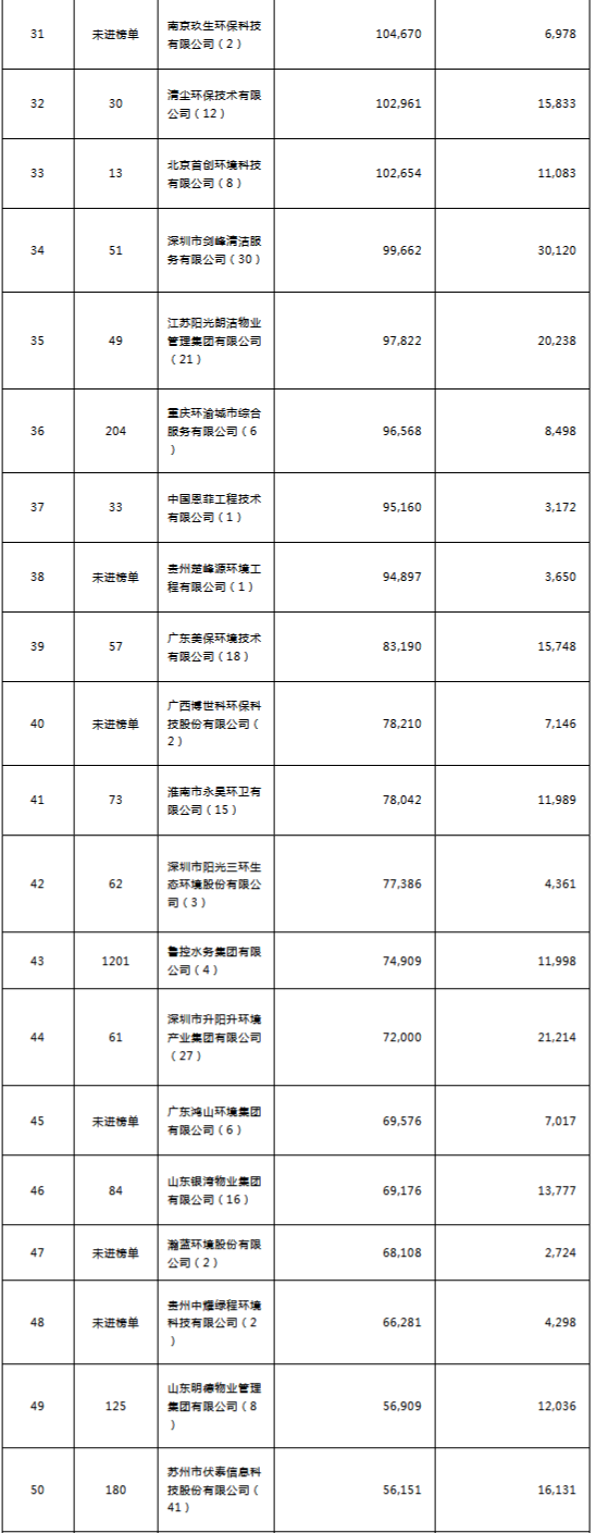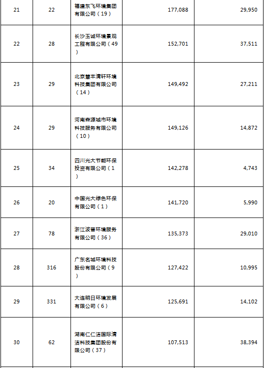 環(huán)境司南2018年度環(huán)衛(wèi)服務(wù)企業(yè)(簽約能力)百?gòu)?qiáng)榜
