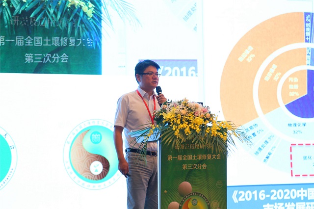 隨后,生態(tài)環(huán)境部南京環(huán)境科學(xué)研究所龍濤研究員、廣東省生態(tài)環(huán)境技術(shù)研究所李芳柏研究員、上海綠地環(huán)境科技股份有限公司方海蘭教授、中信格義循環(huán)經(jīng)濟(jì)有限公司鄒海平教授、武漢大學(xué)侯浩波教授、佛山科學(xué)技術(shù)學(xué)院王海龍教授、農(nóng)業(yè)農(nóng)村部環(huán)境保護(hù)科研監(jiān)測所梁學(xué)峰副研究員、北京潤鳴環(huán)境科技有限公司畢學(xué)博士、污染場地安全修復(fù)技術(shù)國家工程實(shí)驗(yàn)室熊靜博士、上海市環(huán)境科學(xué)研究院楊潔高級工程師、浙江工業(yè)大學(xué)潘響亮教授、中科院南京土壤研究所李柱助理研究員、生態(tài)環(huán)境部土壤中心周燕工程師、中科院南京土壤研究所滕應(yīng)研究員、華南理工大學(xué)郭楚玲副教授、江蘇大地益源環(huán)境修復(fù)有限公司單暉峰教授級高工、中科院南京土壤研究所劉五星研究員、北京化工大學(xué)馮擁軍教授、南京農(nóng)業(yè)大學(xué)潘根興教授、中科院煙臺海岸帶研究所涂晨助理研究員、上海速宜環(huán)境科技有限公司崔紅斌總工程師、上?;ぱ芯吭簭堥L波高級工程師等22位行業(yè)內(nèi)頗具影響力的學(xué)者專家圍繞三大主題分別進(jìn)行了精彩演講,會議一直持續(xù)到下午18點(diǎn)50分,讓現(xiàn)場來賓享受了一場土壤修復(fù)知識的饕餮盛宴,現(xiàn)場掌聲熱烈、提問踴躍,收到了良好的會議效果。