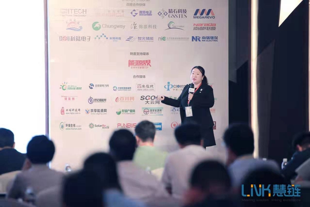 西安精石電氣科技有限公司產(chǎn)品總監(jiān)鄧?guó)檮偩图劓溨腔蹆?chǔ)能解決方案發(fā)表演講。