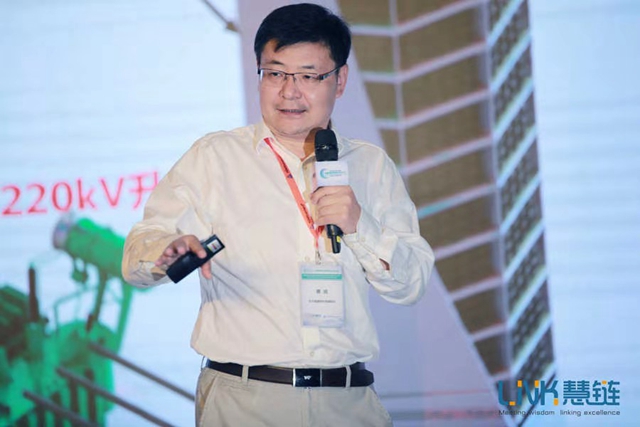 上海交大能源研究院副院長(zhǎng)蔡旭就百M(fèi)W級(jí)高壓體系電池儲(chǔ)能系統(tǒng)發(fā)表演講。