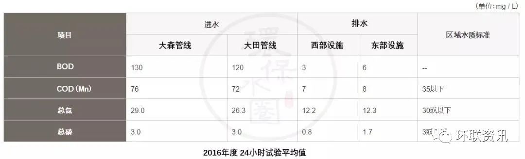 進水和出水的平均質(zhì)量(2016年度24小時試驗平均值)