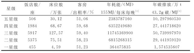 表1:中國星級飯店床位能源消耗與碳排放情況