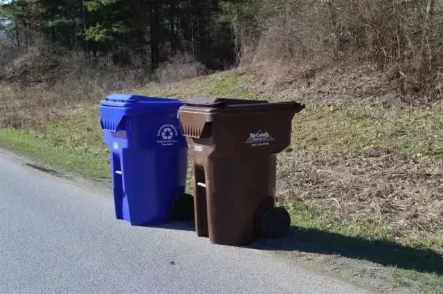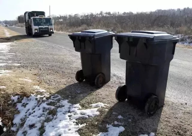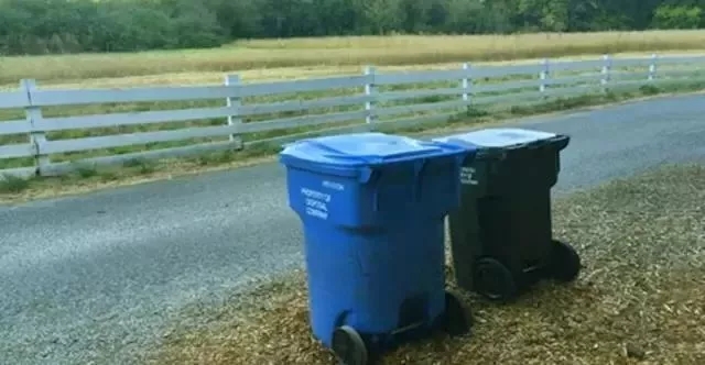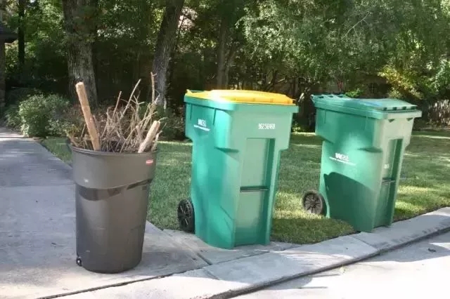 在美國鄉(xiāng)村,每家每戶都有一個(gè)帶輪子的垃圾箱,